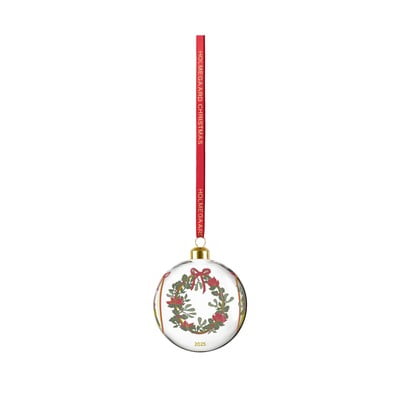 Annual Christmas Bauble 2025 no Holmegaard ir skaists aksesuārs svētku sezonai. Šogad Holmegaard atskatās uz savu divsimtgades vēsturi, tāpēc šis rotājums ir ieturēts romantisko Ziemassvētku noskaņās, atsaucoties uz zīmola dibināšanas laiku.