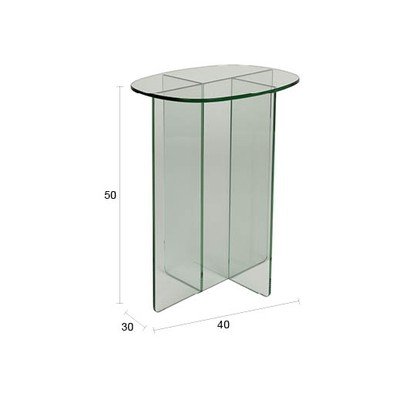 Zīmola Zuiver stikla sānu galdiņš Linea. Stikla konstrukcija viegli papildinās interjeru, to vizuāli neapgrūtinot.