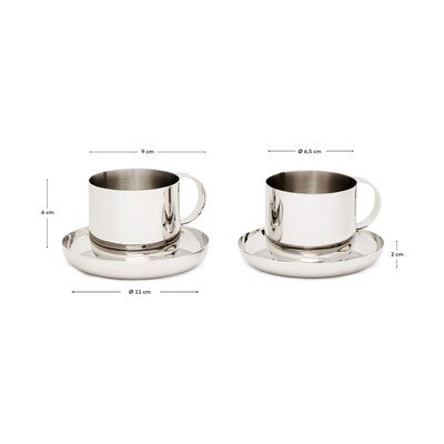 Kave Home tasīšu komplekts Nirela ir izgatavots no nerūsējošā tērauda un sastāv no divām daļām, no kurām katrai ir unikāli izmēri. Pateicoties šim materiālam, tases saglabā nevainojamu izskatu, ir izturīgas pret koroziju un ļoti viegli tīrāmas pēc katras lietošanas reizes, nodrošinot to ilgmūžību. To funkcionālais un daudzpusīgais dizains padara tās ideāli piemērotas ikdienas lietošanai un īpašiem gadījumiem, piešķirot virtuvei praktiskumu un eleganci.