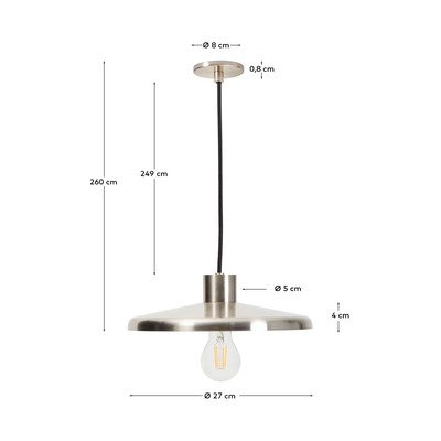 Kave Home ražotais piekaramais gaismeklis Nuvira izceļas ar savu eleganto un funkcionālo dizainu. Tā satīna tērauda konstrukcija piešķir jebkurai telpai modernu un izsmalcinātu izskatu.