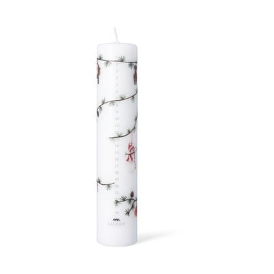 Motīvi, kurus atradīsiet uz sveces, ir mākslinieces Rikke Jacobsen darbs, kura tos uzgleznojusi, izmantojot akvareļu tehniku. Visi attēli ir skaisti izkārtoti uz ciedra zara ar lapegles čiekuriem, un svece ir marķēta ar skaitļiem no 1 līdz 24.
