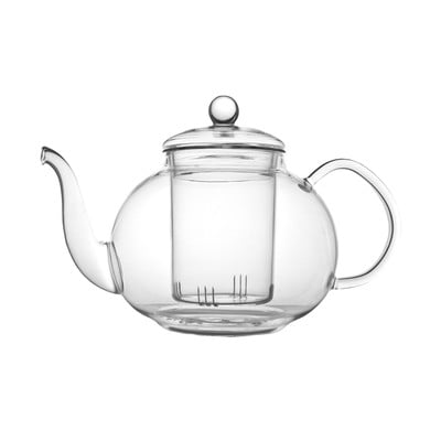 Skaista, eleganta tējkanna, kas izgatavota no augstas kvalitātes stikla.
