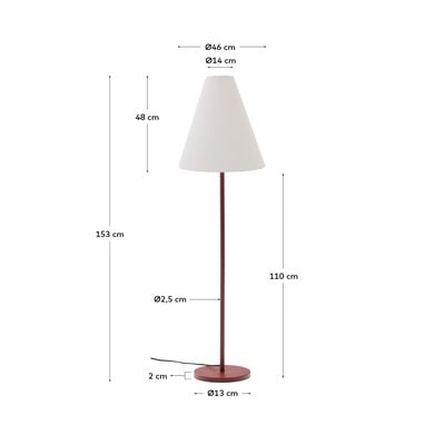 Kave Home stāvlampa Navat piešķir jūsu interjeram elegantu, taču minimālisma stilu. Lampa ir izgatavota no metāla ar terakotas oranžu apdari un papildināta ar baltu auduma konusveida abažūru. Stāvlampa ir saderīga ar E27 spuldzi ar maksimālo jaudu 40 W. Spuldze nav iekļauta komplektā.