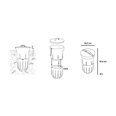 Plastia kompostētājs nodrošina dārzeņiem un garšaugiem pastāvīgu organiskā mēslojuma padevi. Kompostētāju var izmantot visu gadu gan paaugstinātās, gan parastās dobēs vai siltumnīcā. Tas ir izgatavots no 35% otrreizēji pārstrādātu materiālu. Tas ir apbalvots ar Red Dot Design balvu 2024. gadā.