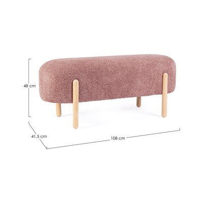 No buklē auduma, polsterēts, terakotas oranžs, platums 108 cm, dziļums 41,5 cm, augstums 48 cm
