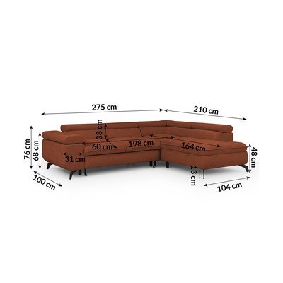 No šenila audumaRegulējams/salokāms/ar uzglabāšanas vietuAr labo stūri/L veidaTerakotas oranžsMājdzīvniekiem piemērots/pret traipiem noturīgsČetrvietīgsPlatums 275 cm