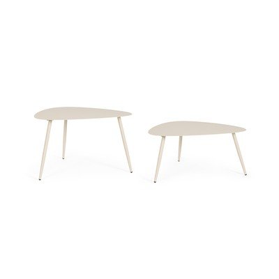 Bizzotto komplektā Yvonne ietilpst divi dārza kafijas galdiņi no tērauda, kas ir pārlaicīgā bēšā krāsā. Galdu augstums atšķiras – viena augstums ir 35 cm, bet otra – 45 cm. Pateicoties smalkajam dizainam ar plānām kājām un organiskajai virsmas formai, galdiņi rada elegantu un gaisīgu iespaidu. Tos var viegli novietot uz mazāka balkona vai terases.