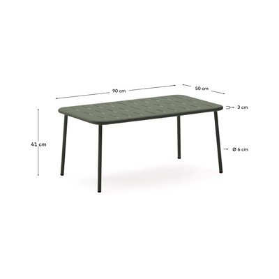 Zīmola Kave Home tērauda dārza kafijas galdiņš Zivia ir paredzēts daudzpusīgai lietošanai gan iekštelpās, gan ārpus tām. Tā garenā taisnstūra virsma ar noapaļotiem stūriem un elegantu perforējumu piešķir tam modernu izskatu.