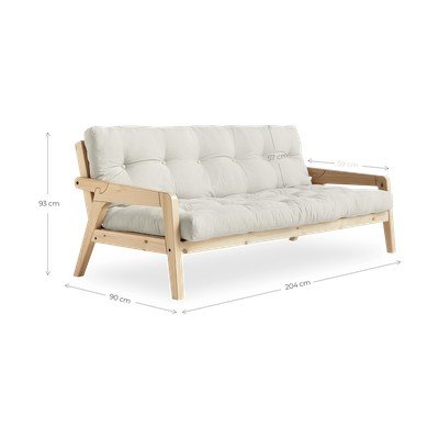 Dīvāns ir izvelkams. Dīvāna komplektācijā ir 130 x 190 cm futona matracis.