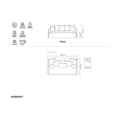 Gaiši pelēks samta salokāms/ar uzglabāšanas vietu dīvāns 225 cm Hula – Makamii