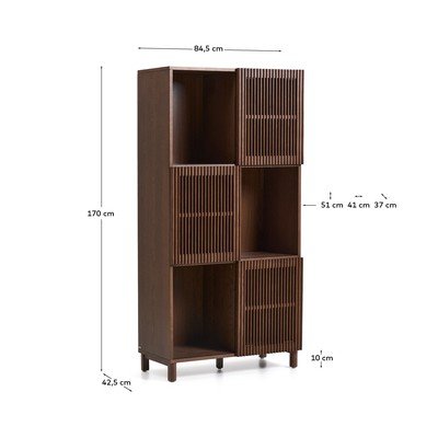 Ar bīdāmām durvīmAr riekstkoka imitācijuNo MDFVirsmas apdare: finieris/virsmas apdare: lakošanaTumši brūnsPlatums 84,5 cmAugstums 170 cmDziļums 42,5 cm