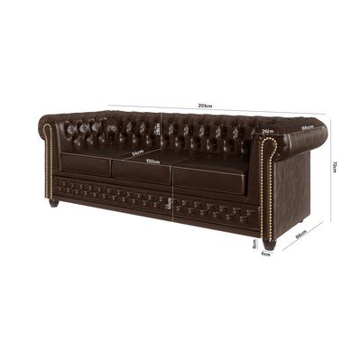 Dīvāns YorkNo ādas imitācijas, gulēšanai/salokāms, Chesterfield, tumši brūns, ūdensizturīgs/mājdzīvniekiem piemērots/pret traipiem noturīgs, divvietīgs, platums 203 cm