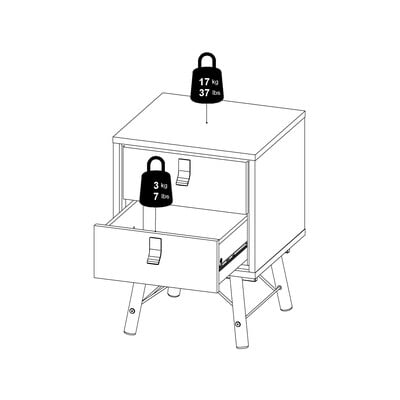 Tvilum naktsskapītis Ry ir eleganta retro un modernā stila kombinācija. Tumši brūnā apdare ar koka atvilktnēm un melniem rokturiem piešķir naktsskapītim izsmalcinātu izskatu. Divas plašas atvilktnes nodrošina pietiekami daudz uzglabāšanas vietas. Slīpās kājas, kas savienotas ar metāla statņiem, nodrošina stabilitāti un piešķir galdiņam atšķirīgu izskatu.