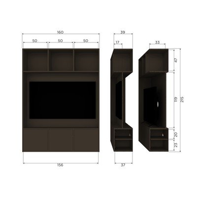 Tumši brūns priedes masīvkoka TV plauktu komplekts Meggy no zīmola WOOOD piedāvā praktisku risinājumu jūsu televizoram ar integrētiem plauktiem un uzglabāšanas skapīšiem.
