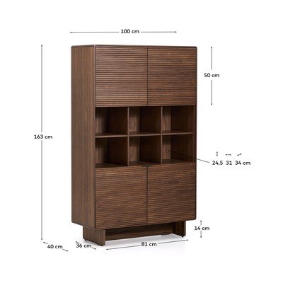 Ar riekstkoka imitācijuNo MDFVirsmas apdare: finierisTumši brūnsPlatums 100 cmAugstums 163 cmDziļums 40 cm