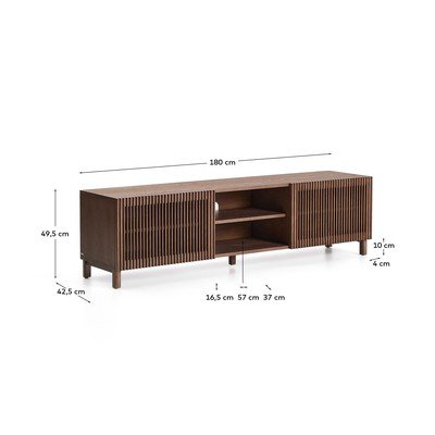 Ar riekstkoka imitācijuNo MDFVirsmas apdare: finieris/virsmas apdare: lakošanaTumši brūnsPlatums 180 cmAugstums 49,5 cmDziļums 42,5 cm