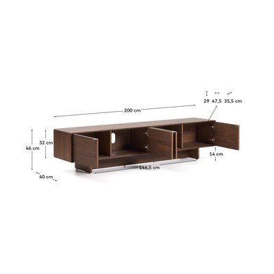 TV galdiņš NorlenAr riekstkoka imitāciju, no MDF, virsmas apdare: finieris, tumši brūns, platums 200 cm, augstums 46 cm, dziļums 40 cm