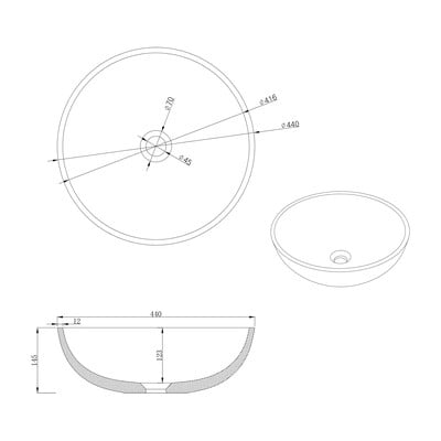 Betona, apaļa, tumši pelēka, ø 44 cm, augstums 14,5 cm