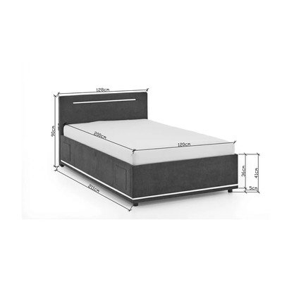 120x200 cm, bez režģa, polsterēta, ar apgaismojumu/ar USB pieslēgvietu, tumši pelēka