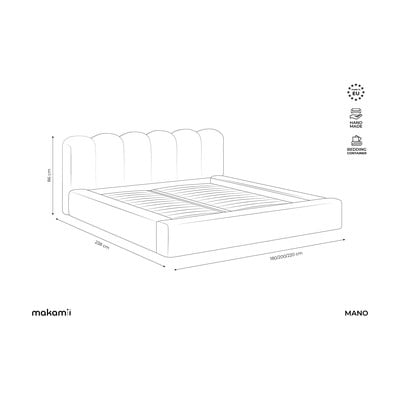 Krēmkrāsas polsterēta divvietīga gulta ar veļas kasti un redelēm 160x200 cm Mano – Makamii