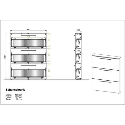 Apavu plaukts WildomarAtverams, ar ozolkoka imitāciju, no skaidu plāksnes, virsmas apdare: melamīns, antracīta pelēks/dabīga toņa, platums 100 cm, augstums 129 cm, dziļums 19 cm