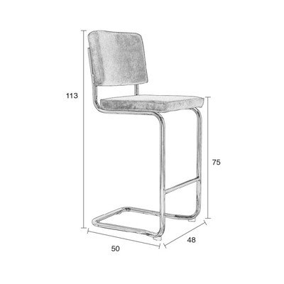 Polsterēts, velveta, tumši pelēks, sēdekļa augstums 75 cm