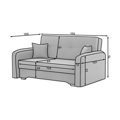 No šenila auduma, salokāms/ar uzglabāšanas vietu, tumši pelēks, divvietīgs, platums 155 cm