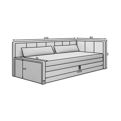 No šenila auduma, salokāms/ar uzglabāšanas vietu, ar labo stūri, tumši pelēks, trīsvietīgs, platums 214 cm, ar labo stūri