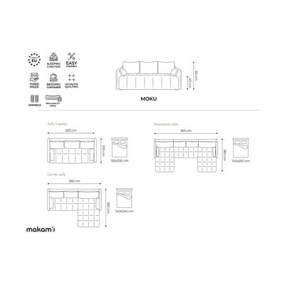 Haki salokāms/ar uzglabāšanas vietu stūra dīvāns (ar labo stūri/ar zvilni) Moku – Makamii