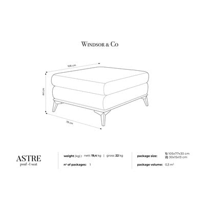 "Astre" kolekcija piedāvā mūsdienīgus dīvānus un pufus. To polsterējums ir izgatavots no augstas kvalitātes auduma, kas imitē samtu.