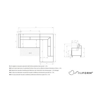 Tumši pelēks samta U-veida izlaižams dīvāns Miuform Lofty Lilly, labais stūris