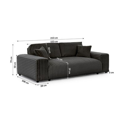 Velveta, tumši pelēks, ūdensizturīgs/pret traipiem noturīgs, trīsvietīgs, platums 213 cm