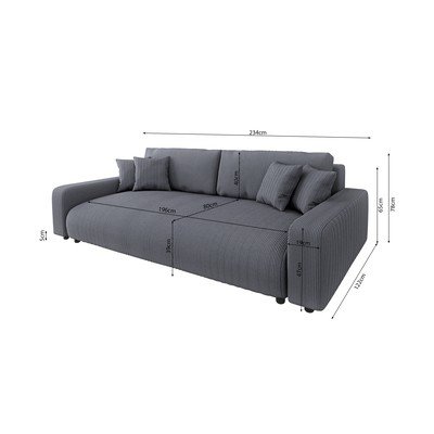 Velveta, salokāms/ar uzglabāšanas vietu, tumši pelēks, trīsvietīgs, platums 234 cm