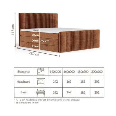 Piezīme: tā kā izstrādājums ir roku darbs un pārvalka audumi ir specifiski, norādīto izmēru pielaide ir +/– 3 cm.