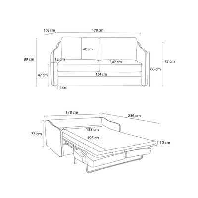 Gulēšanai/salokāms, tumši zils, divvietīgs, platums 178 cm, dziļums 102 cm, sēdekļa dziļums 52 cm, …