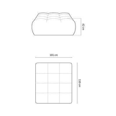 Tumši zils, platums 110 cm, dziļums 101 cm, augstums 42 cm