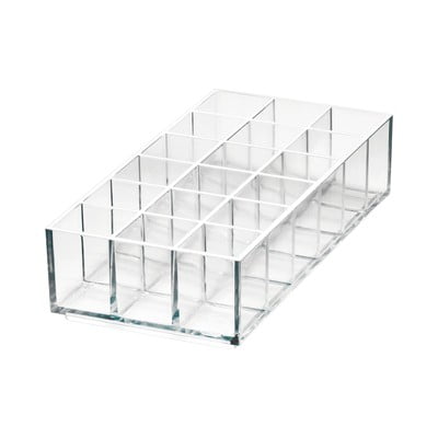 Šī iDesign vannas istabas organizatora dizaina autore ir grima māksliniece Sāra Tanno. Tam ir minimālistisks caurspīdīgs dizains, kas ir gan pievilcīgs acīm, gan praktisks visu skaistumkopšanas produktu uzglabāšanai. Tas ir izgatavots no videi draudzīgas plastmasas, kurā nav ne pēdu no BPA.