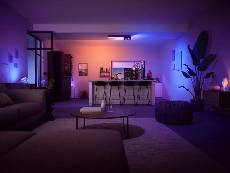 - Paplašināmība ar Hue Bridge: pievienojot ar Hue Bridge (nav iekļauts komplektā), varat atklāt pilnu funkciju komplektu, piemēram, kontrolēt gaismas ārpus mājas, plānot automātisko ieslēgšanos/izslēgšanos un daudz ko citu.