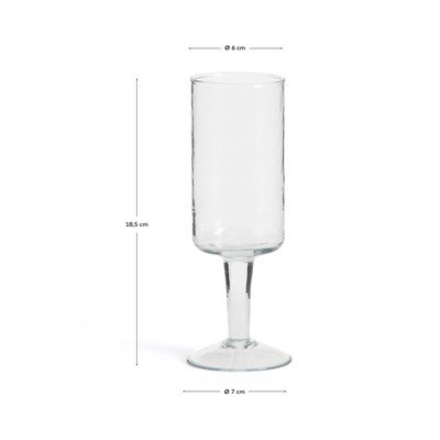 Kave Home vīna glāze Obila ir izgatavota no pārstrādāta stikla, kas tai piešķir ne tikai unikālu izskatu, bet arī ekoloģisku dimensiju. Tās vienkāršais un pārlaicīgais dizains viegli pielāgojas dažādiem stiliem un gadījumiem, piešķirot gan funkcionalitāti, gan personiskumu jūsu maltītes baudīšanai. Stikla virsma ir dekorēta ar interesantu faktūras apdari.