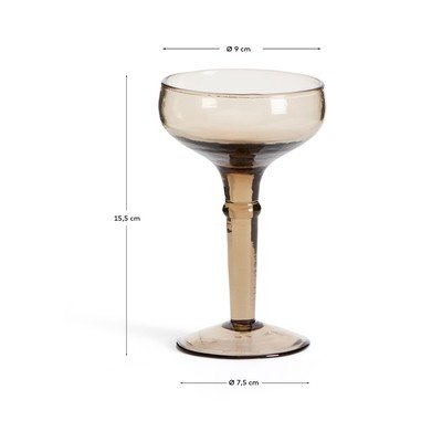 Kave Home glāze Vinea ir daļa no kolekcijas, kas izgatavota no pārstrādāta stikla. Tās vienkāršais un pārlaicīgais dizains ar platu bļodu un fiksētu kājiņu var viegli pielāgoties dažādiem stiliem un gadījumiem, piešķirot gan funkcionalitāti, gan personiskumu jūsu ēdamistabas pieredzei.