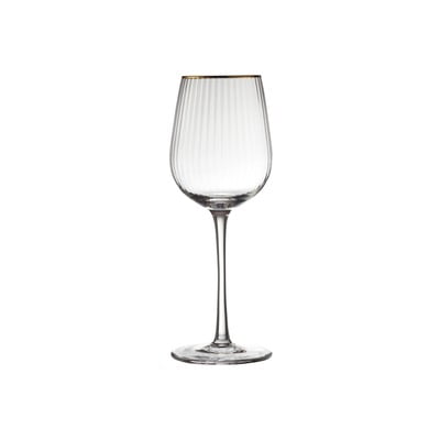Lyngby Glas četru balto vīna glāžu komplekts Palermo piešķir jūsu galdam eleganci un stilu. Katrai 300 ml glāzei ir smalks rievojums un zelta apmale, kas piešķir senatnīgu izskatu atbilstoši mūsdienu tendencēm. Glāzes ir veidotas tā, lai atstarotu gaismu un izceltu pasniegtā vīna skaistumu. Ideāli piemērotas svētku reizēm un ikdienišķiem kopā būšanas brīžiem.