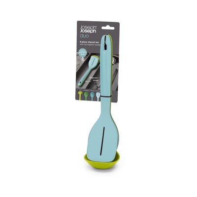 Joseph Joseph virtuves piederumu komplekts Duo ir lielisks rīks ikvienai virtuvei. Komplektā ir četri praktiski rīki stilīgos toņos.