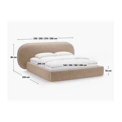 Bēša polsterēta divvietīga gulta ar veļas kasti un redelēm 200x200 cm Ovalo – Micadoni