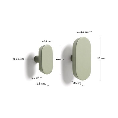 Kave Home sienas āķus Arely no Kave Home ir izstrādājis Nahtrang, un tiem ir elegantas līnijas un rūpīga meistarība, kas piešķir telpai funkcionalitāti un stilu. Šie pakaramie ir pieejami divu komplektu veidā, un tie ir izgatavoti no dižskābarža masīvkoka ar gludu lakotu apdari, kas nodrošina to izturību un vieglu kopšanu.