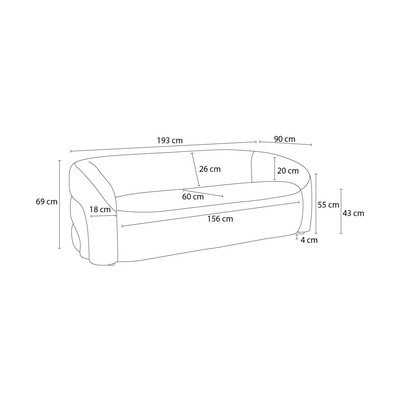 Pelēks dīvāns no buklē auduma 193 cm Elina – Bobochic Paris
