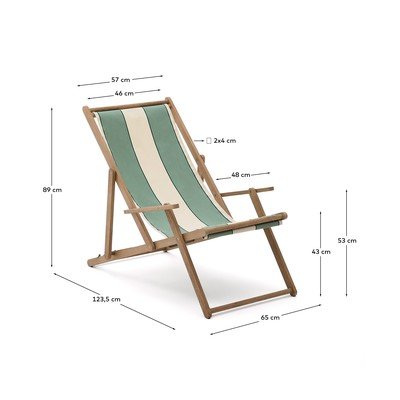 Zīmola Kave Home dārza zvilnis Vilara ar roku balstiem ir lieliska izvēle atpūtai brīvā dabā. Tā audums ar svītrainu rakstu ir izstrādāts maksimālai izturībai un vieglai kopšanai – tas ir antibakteriāls, ātri žūstošs, ūdeni atgrūdošs un izturīgs pret UV starojumu.