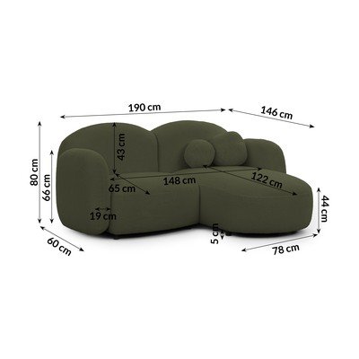 Zaļš stūra dīvāns no buklē auduma (ar labo stūri/ar zvilni) Orbit – Ropez