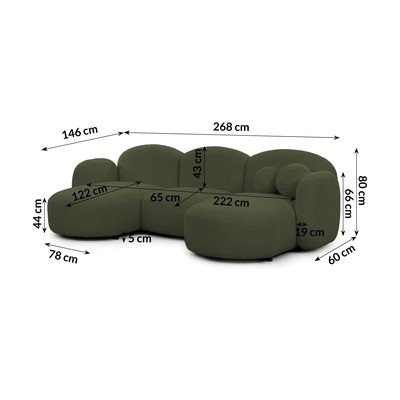 Zaļš stūra dīvāns no buklē auduma (ar labo stūri/ar zvilni) Orbit – Ropez
