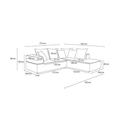 Tumši pelēks stūra dīvāns no šenila auduma (ar labo stūri/L veida) Whesley – Bobochic Paris