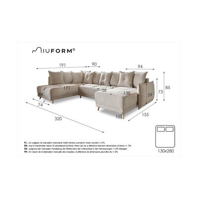 VelvetaSalokāms/ar uzglabāšanas vietuAr kreiso stūri/U veidaZaļšVairākvietīgsPlatums 320 cmDziļums 191 cmSēdekļa dziļums 58 cm